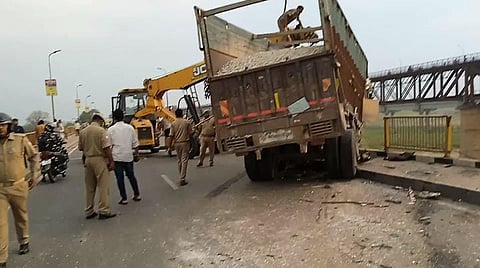 The truck, at the time of reporting, is hanging below the railing in the Ganga river. At present, the identity of both the deceased has not been established, while in this incident, the guard of MNNIT who was going to MNNIT for morning duty on his bike also fell victim to this accident and his bike fell down from the bridge, in which he died on the spot. The police has promptly taken charge and is managing the traffic.